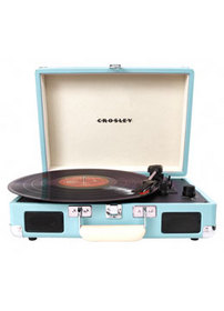 Love the rich, warm sound of vinyl, but wish it was a more moveable music format? Put down the iPod and mobilize your music with the Crosley Cruiser three-speed portable turntable. Constructed of wood and bound in a leatherette material, the briefcase-styled record player is lightweight and easily transported from place to place. It features built-in stereo speakers so you can listen to your music without having to connect it to a speaker system. Cruise over to a friend’s house and experience vinyl’s superior sound together. Product Dimensions: Weight: 112.00 oz
