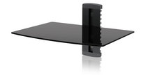 Product Description: The Ematic DVD Player Wall Mount Kit safely mounts your DVD player your wall. Includes all mounting hardware. Universal DVD Mount 5mm black tempered glass shelf Max load capacity 17.6 lbs Adjustable shelf height Cable management All mounting hardware included Product Dimensions: Weight: 126.88 oz