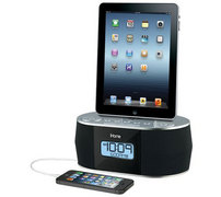 Product Description: The iDN38 is a dual alarm clock for iPad, iPhone and iPod that lets you charge your iPad, Phone or iPod and lets you wake and sleep to any of these or to FM radio. Features a ? exible 30-pin dock and a universal USB port to charge and play both Lightni Product Dimensions: Weight: 42.00 oz