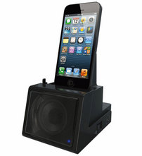 Product Description: Dok CR13 Two Port Universal Smart Phone Charger with Bluetooth Speakerphone. Charges any two portable media devices including phones and tablets, simultaneously, in one location. Compatible with any smart devices including iPhones, iPads, Samsung Galaxy and Blackberry. Uses SCD (Smart Current Detection) to adjust current flow and ensure proper charge of each device. Play and listen to one device on the built-in speaker while charging. Handsfree answering with Bluetooth Speakerphone. Package includes rechargeable Li-ion battery, AC adaptor, 2 USB charging cables, 1 Auxiliary audio cable and a Cradle Insert. Product Dimensions: Weight: 102.00 oz